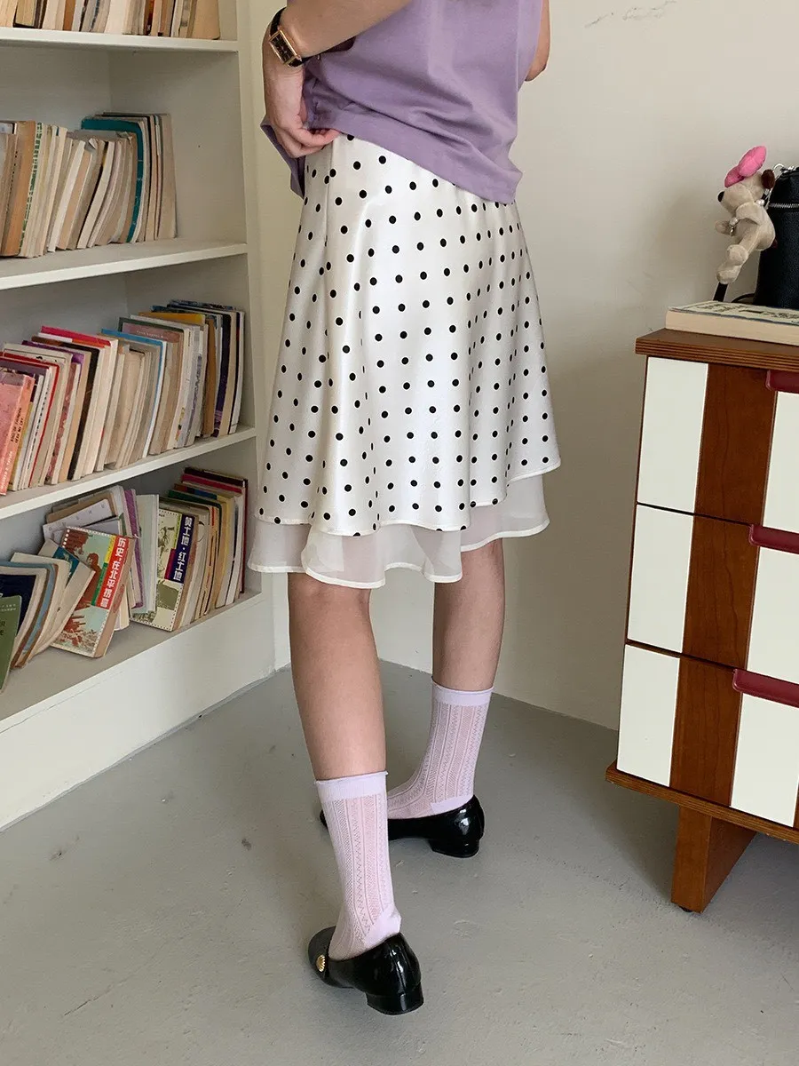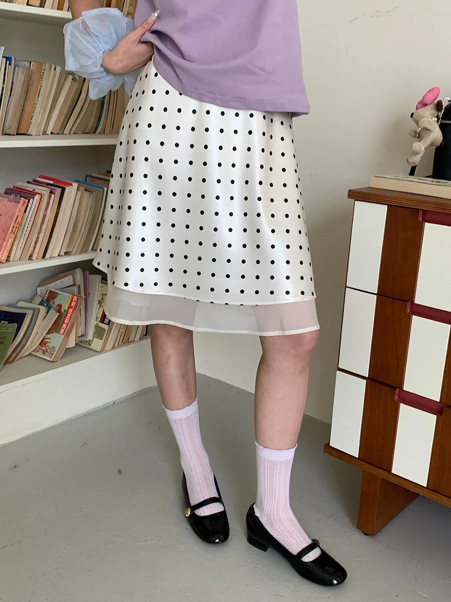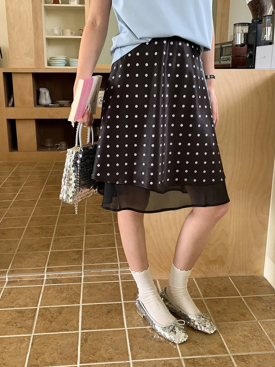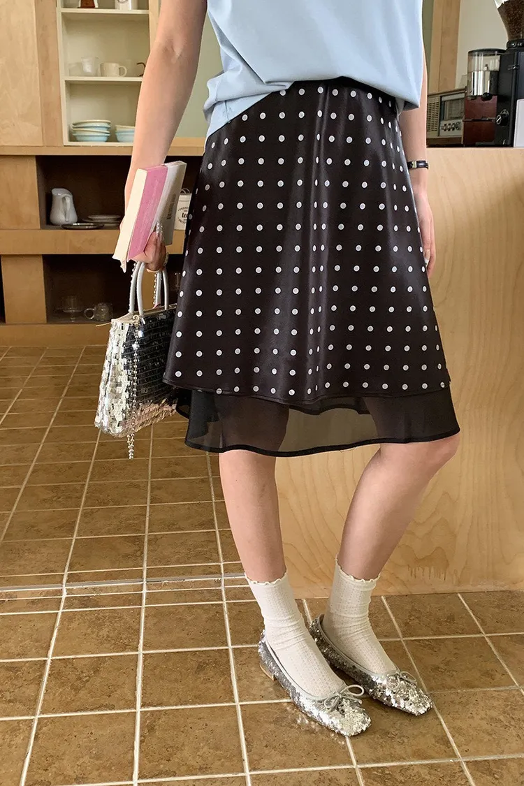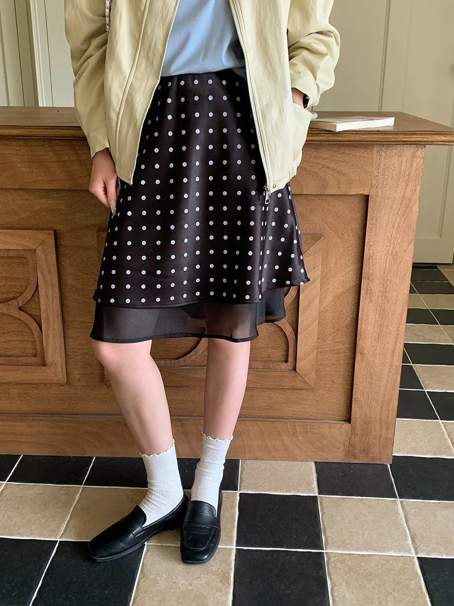 波點網紗 緞面短裙