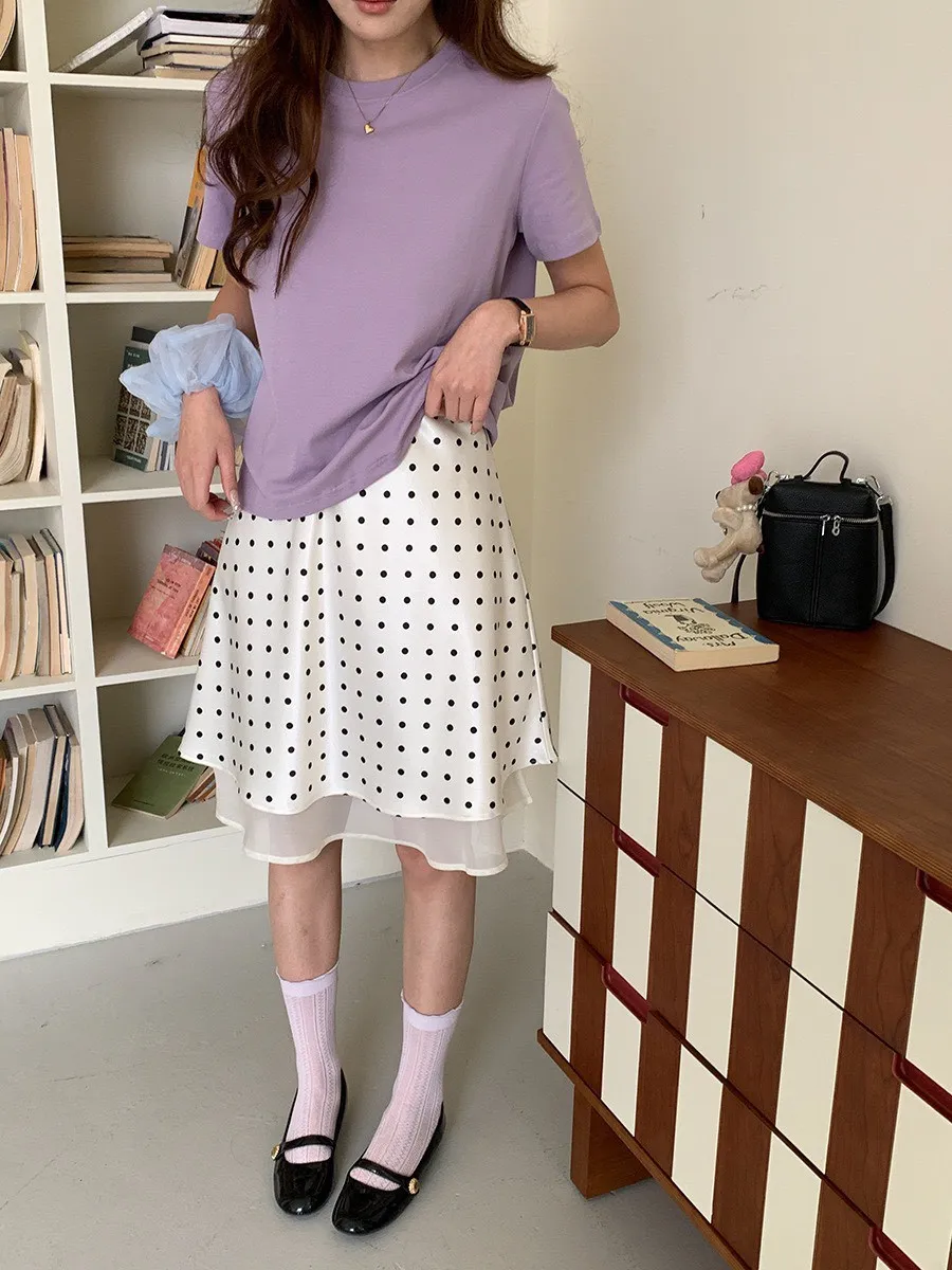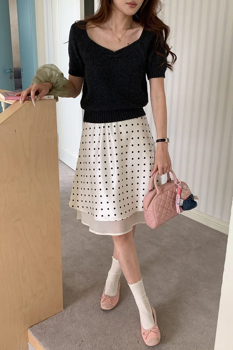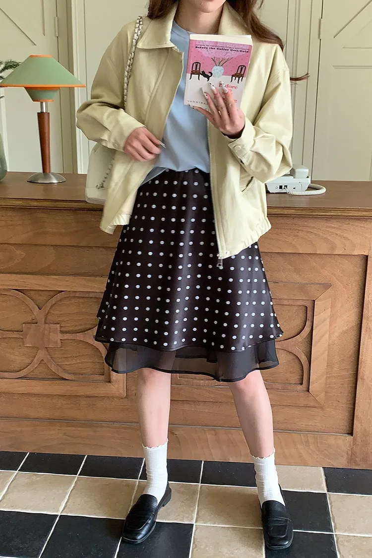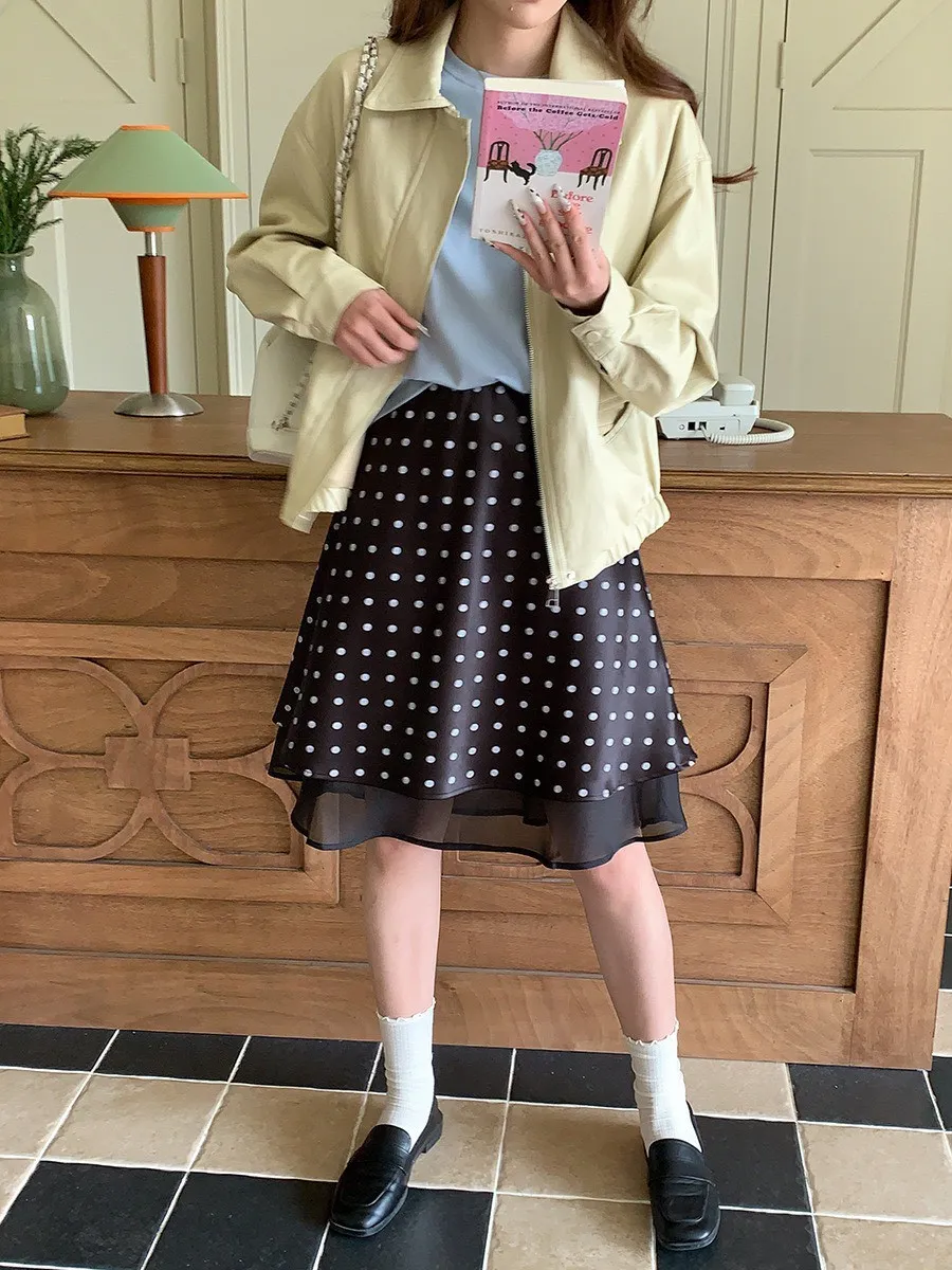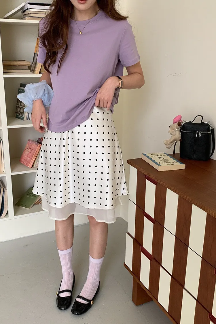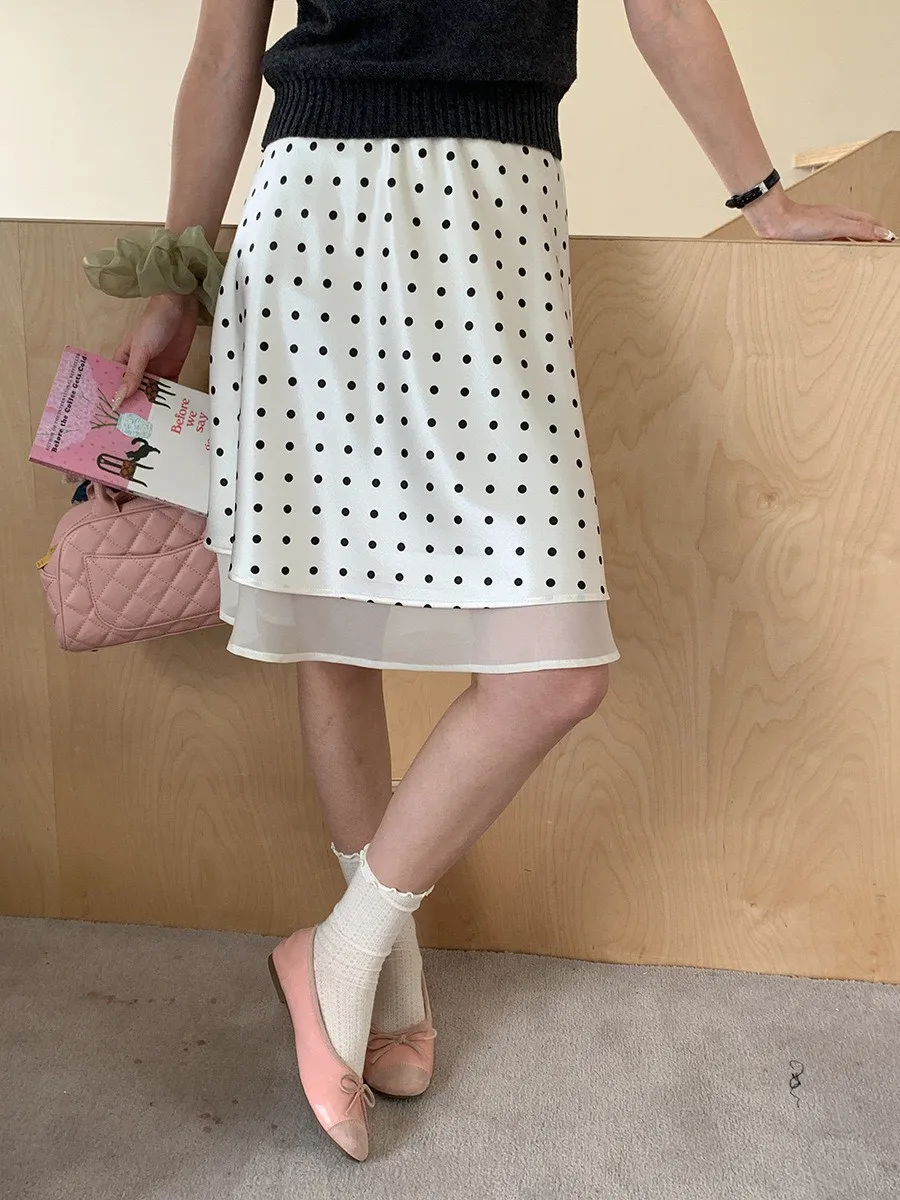 波點網紗 緞面短裙
