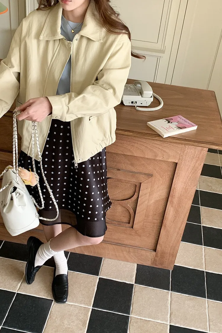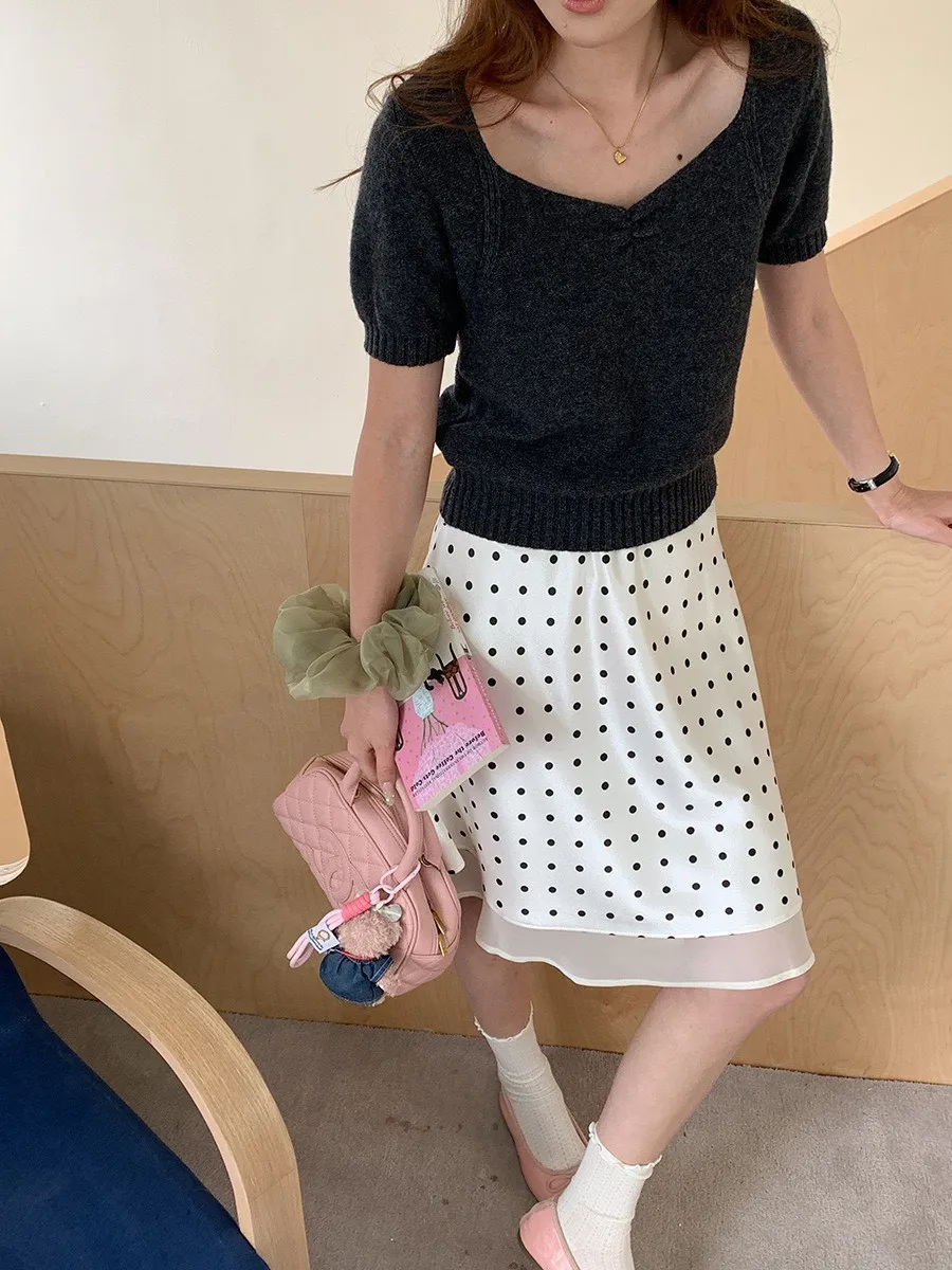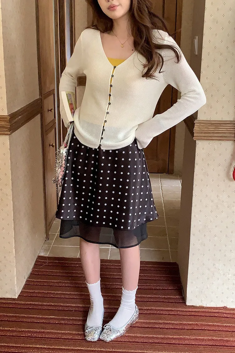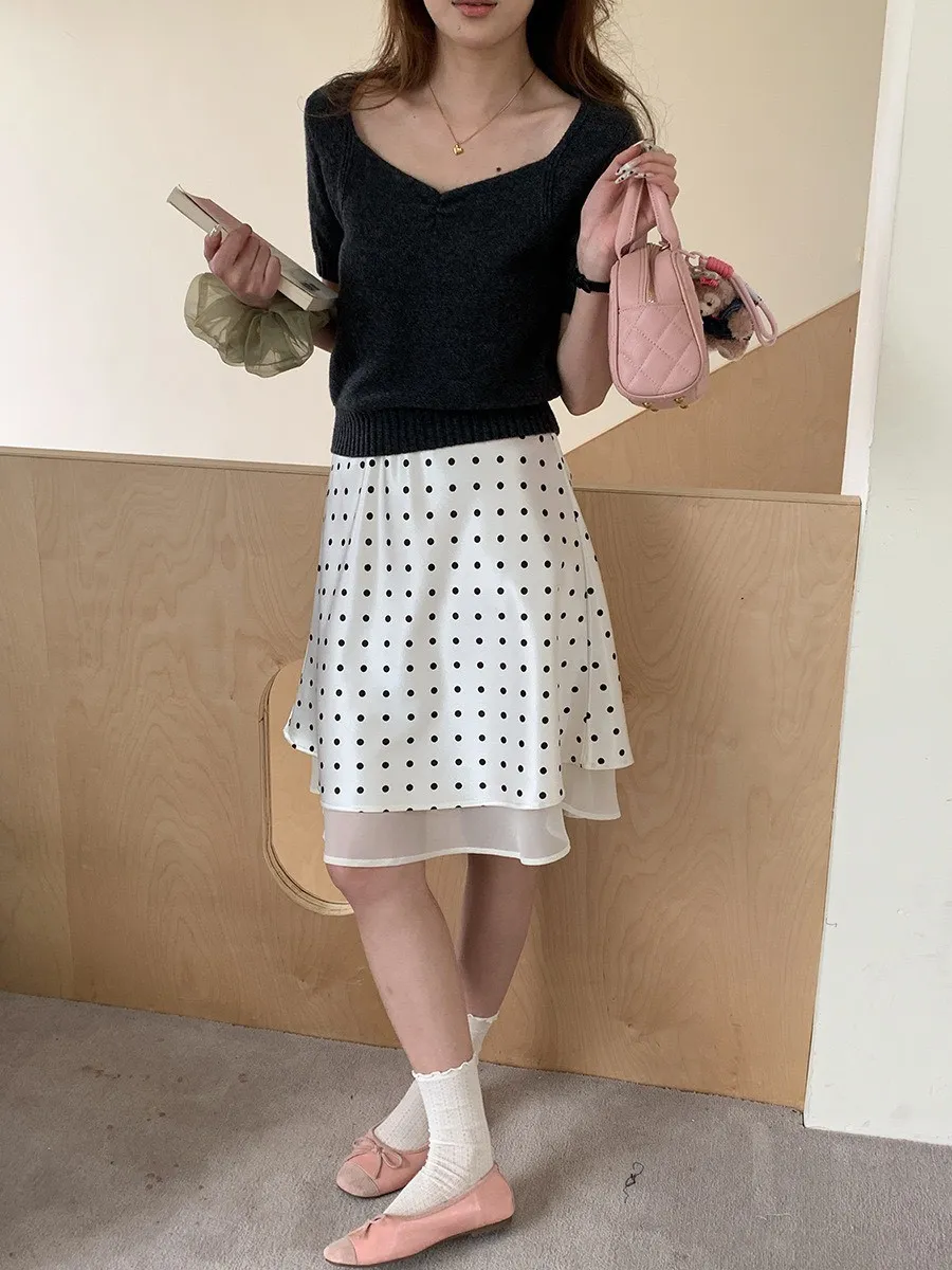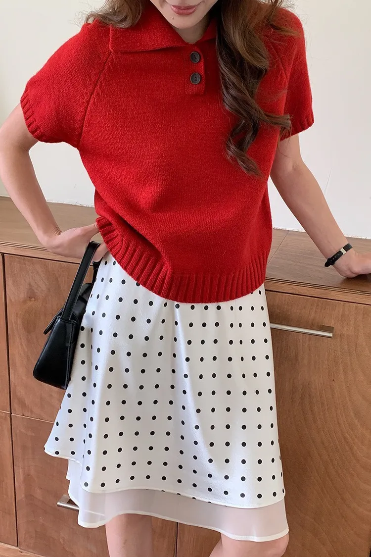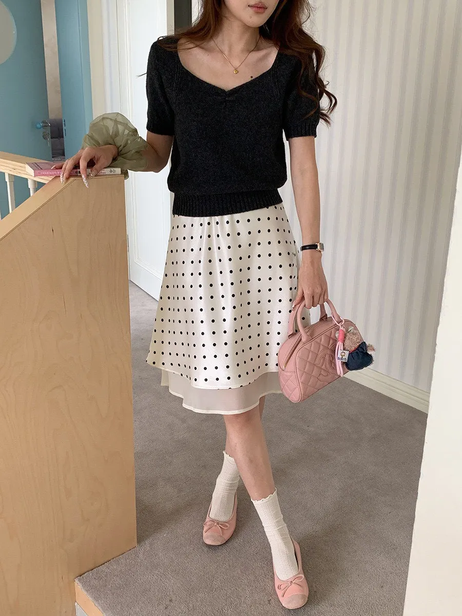 波點網紗 緞面短裙