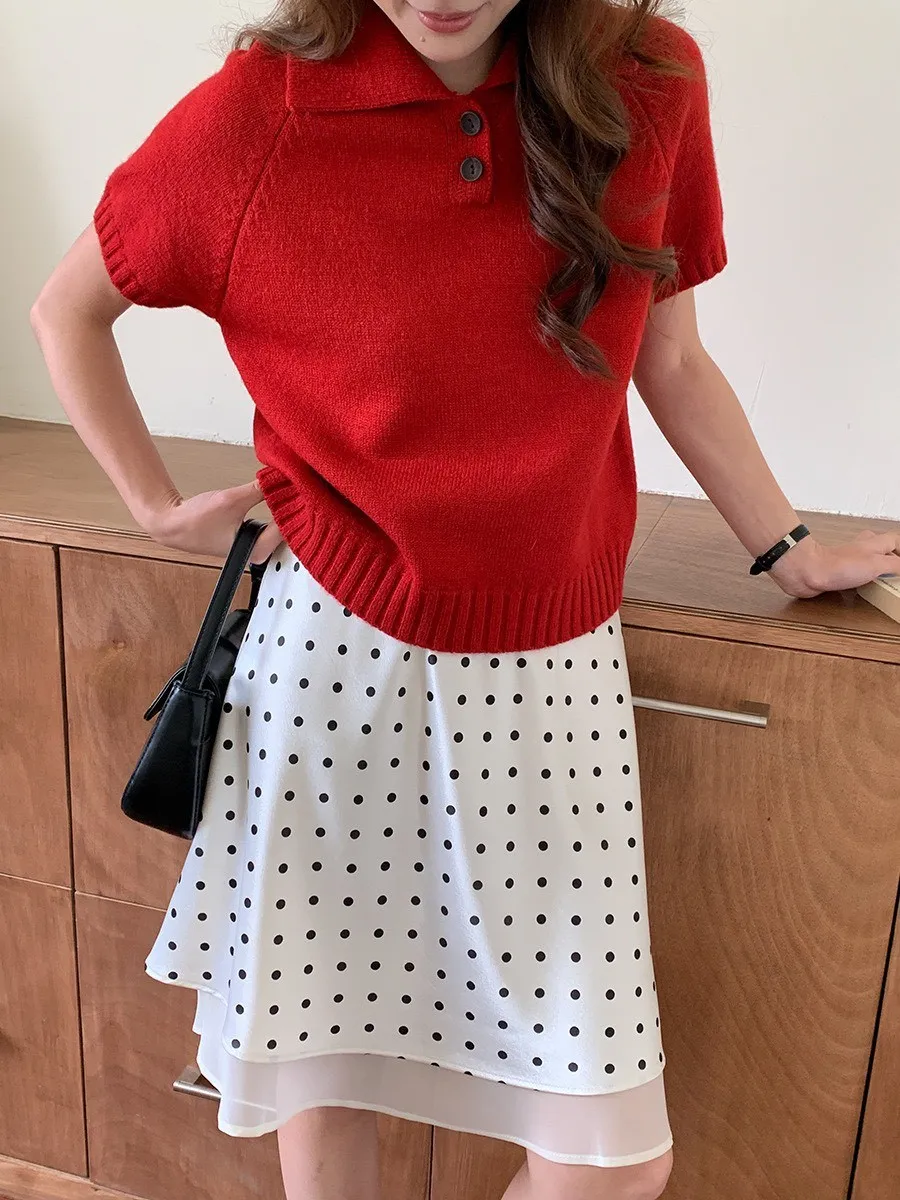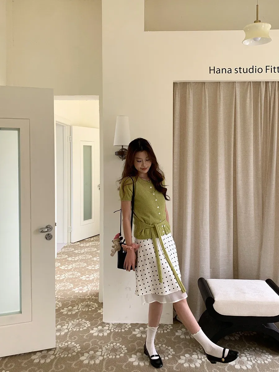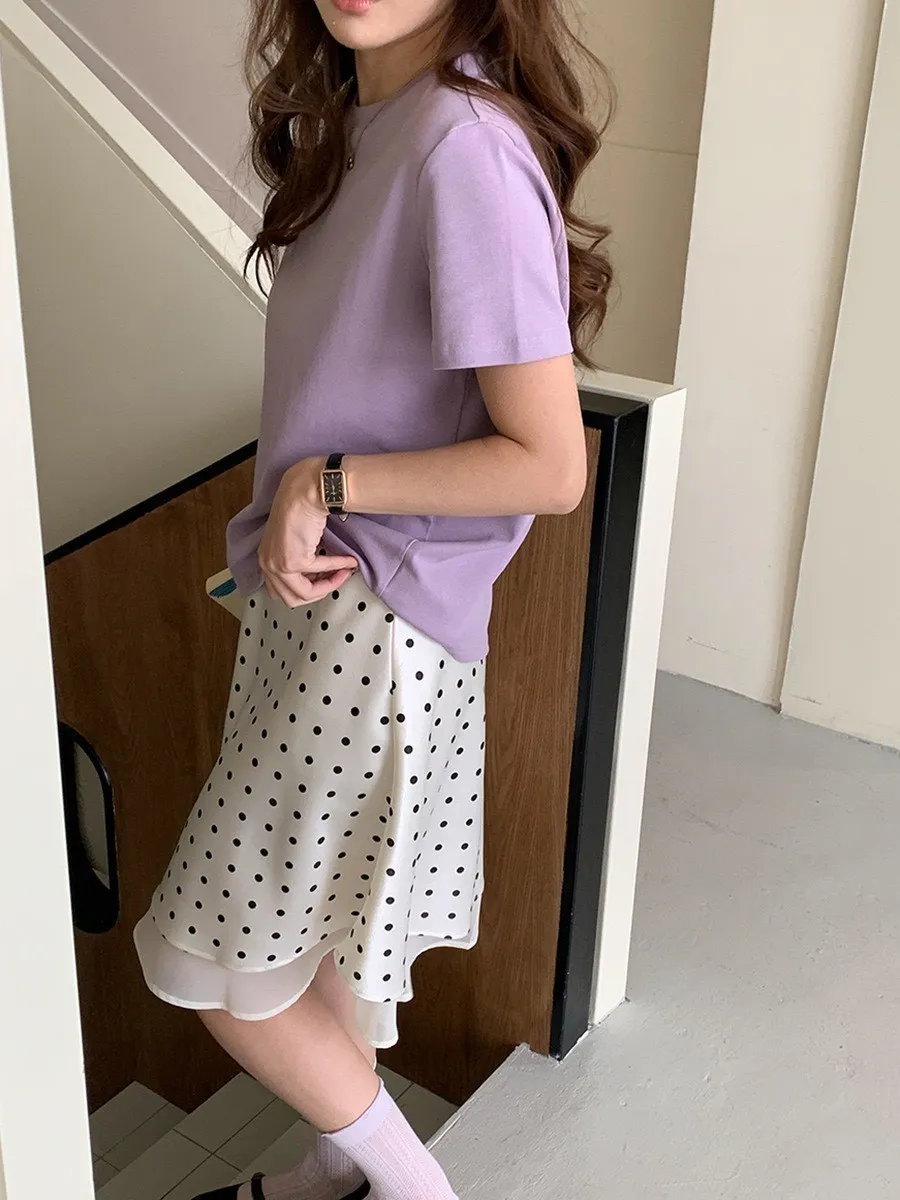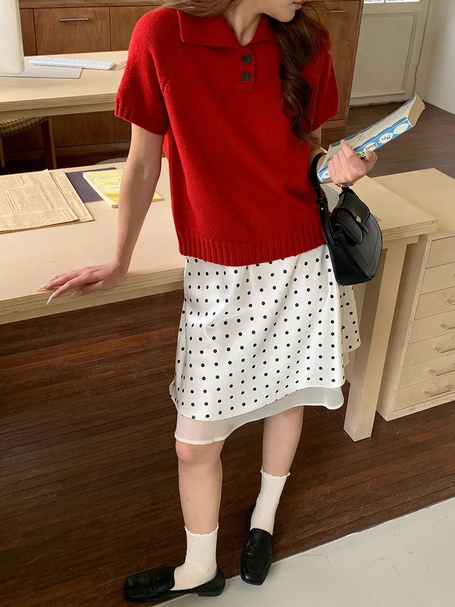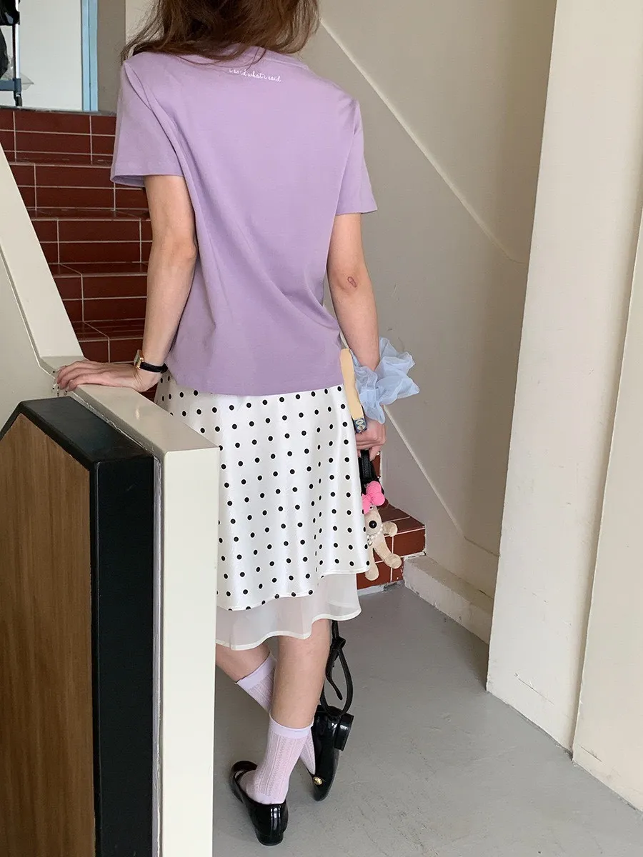 波點網紗 緞面短裙