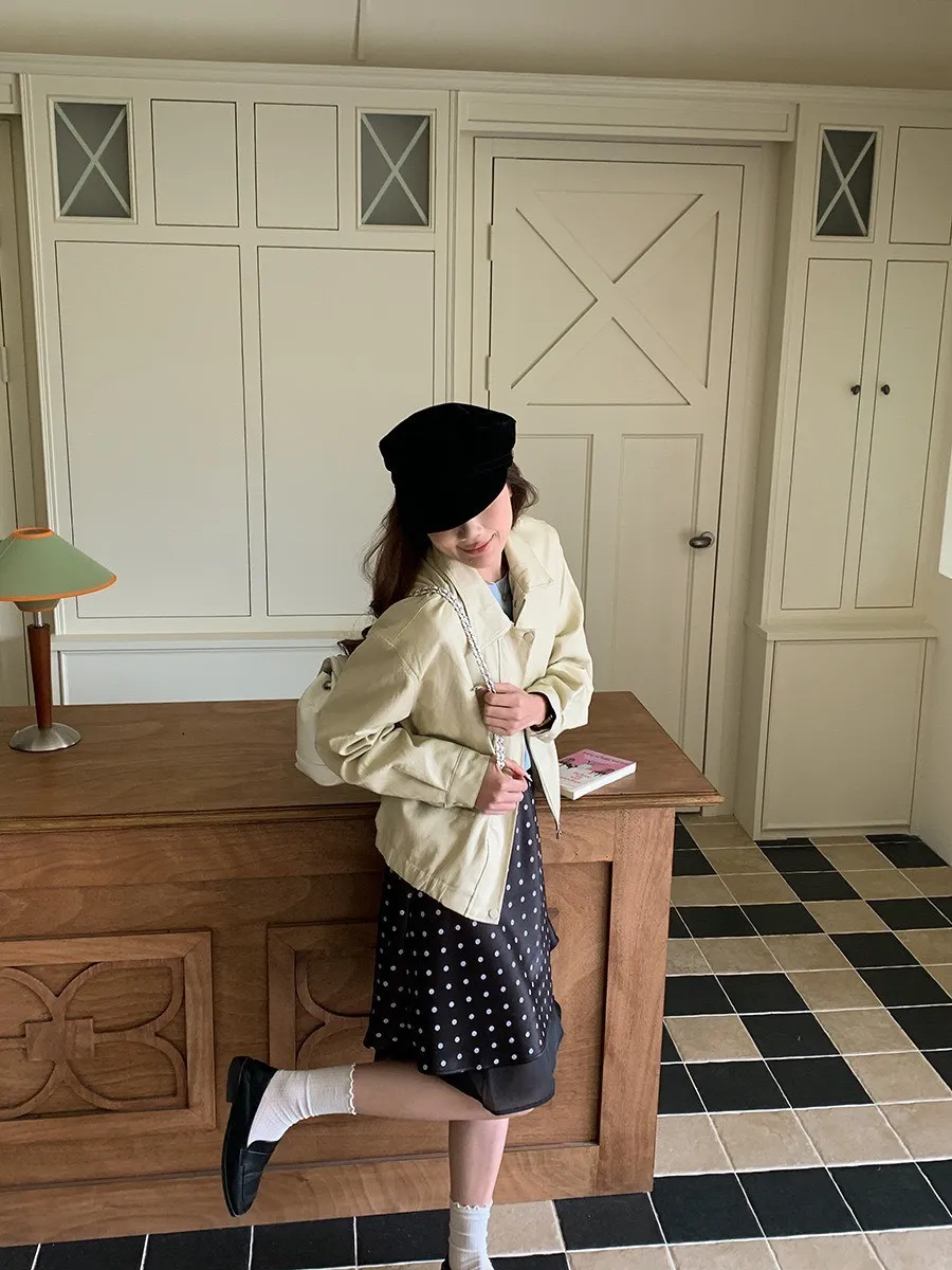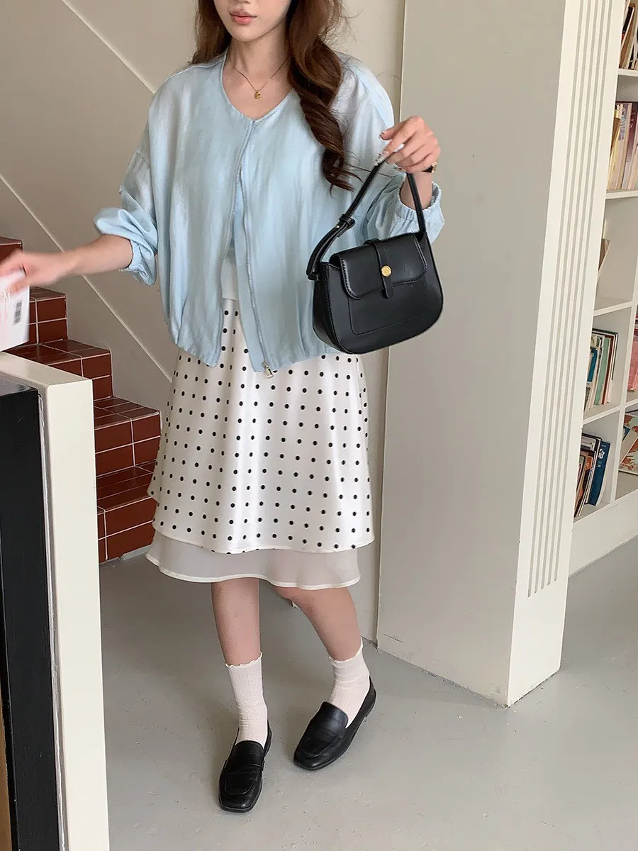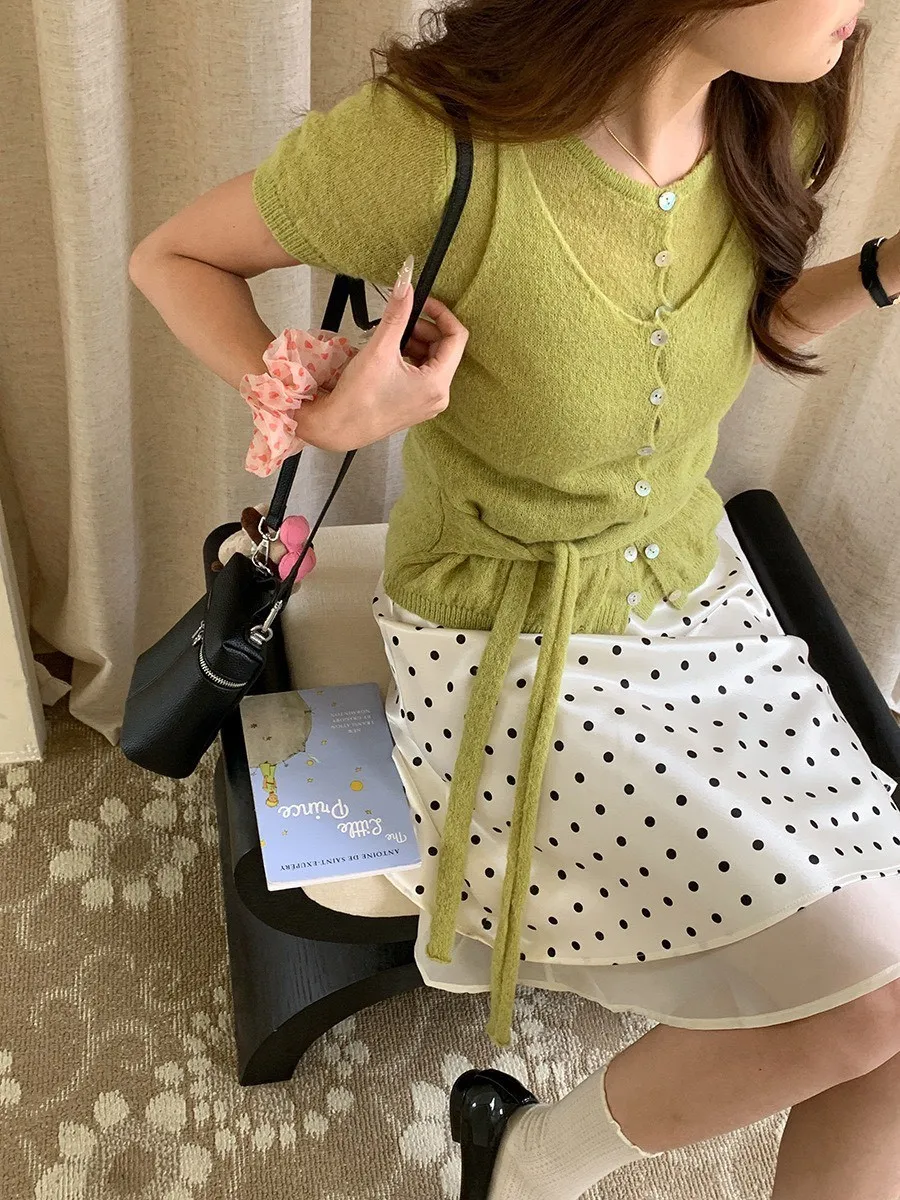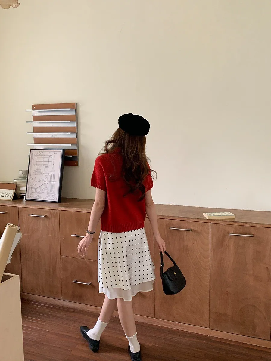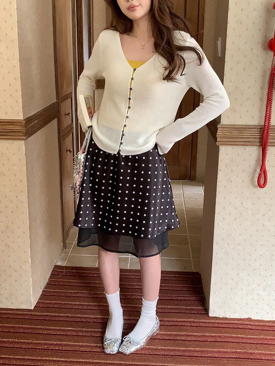 波點網紗 緞面短裙
