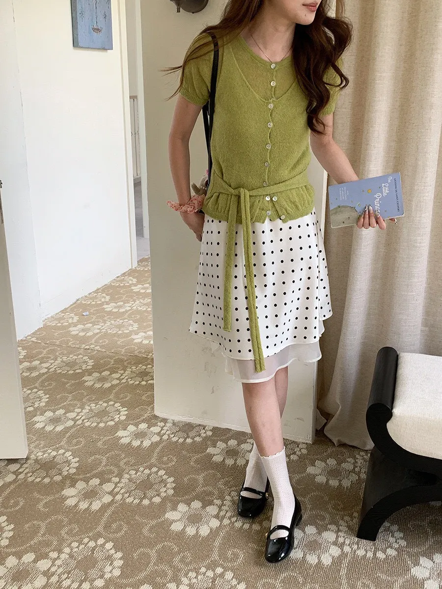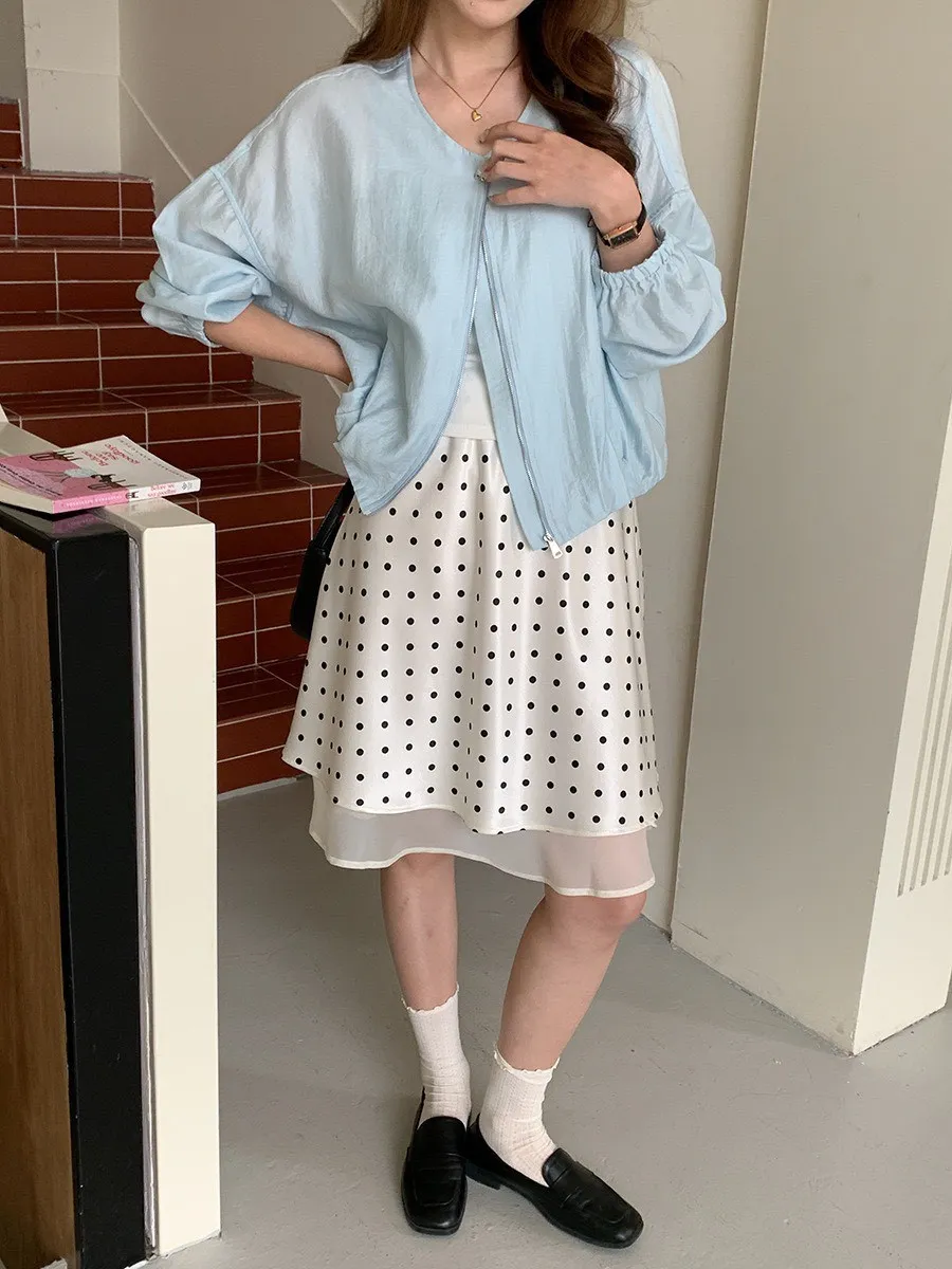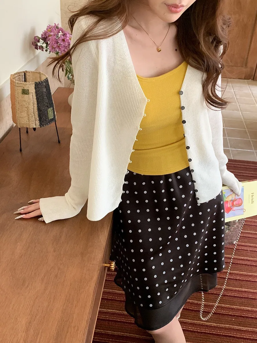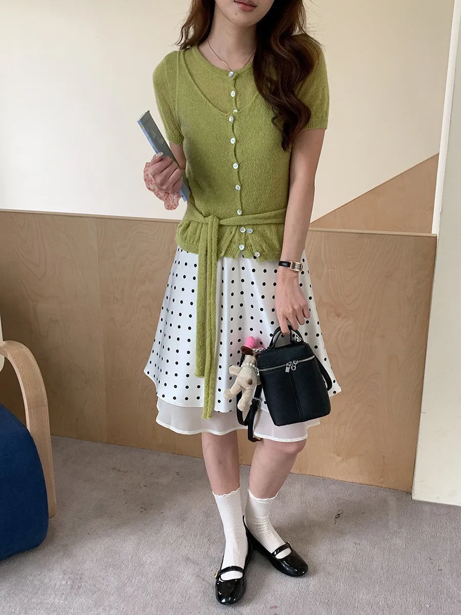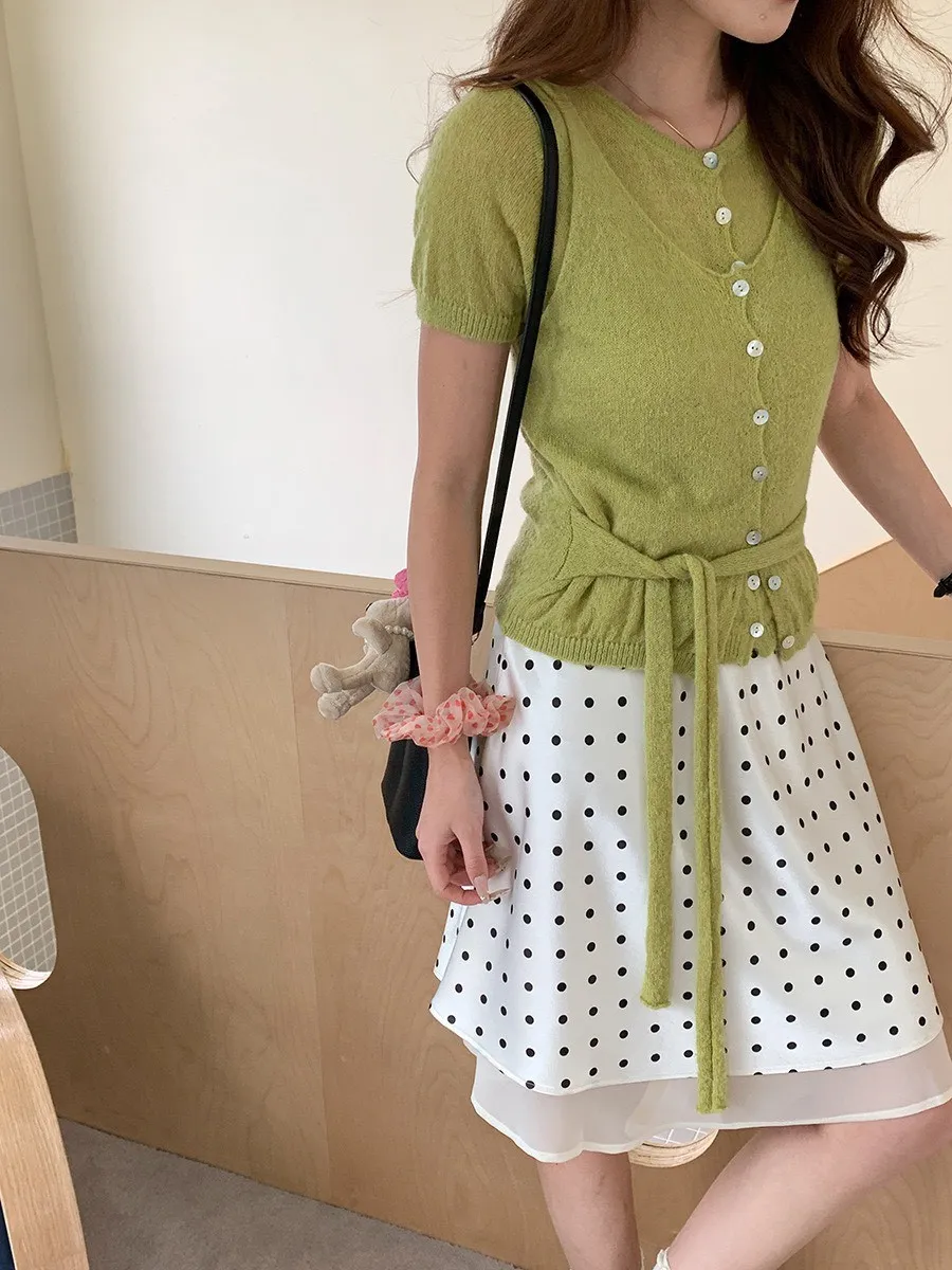 波點網紗 緞面短裙