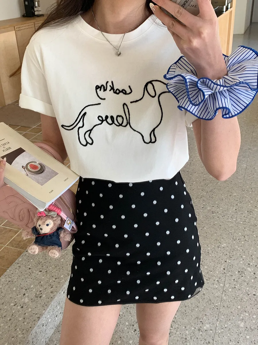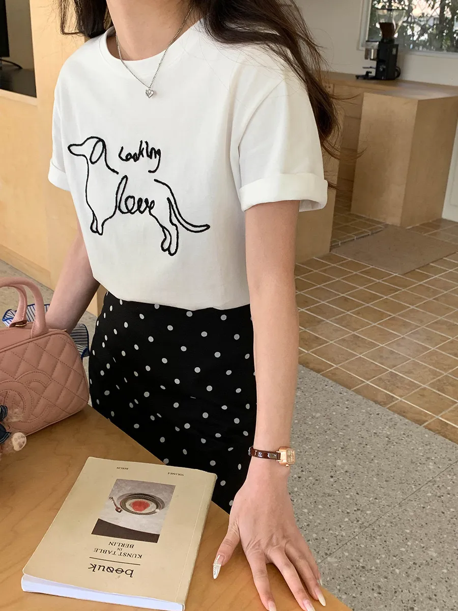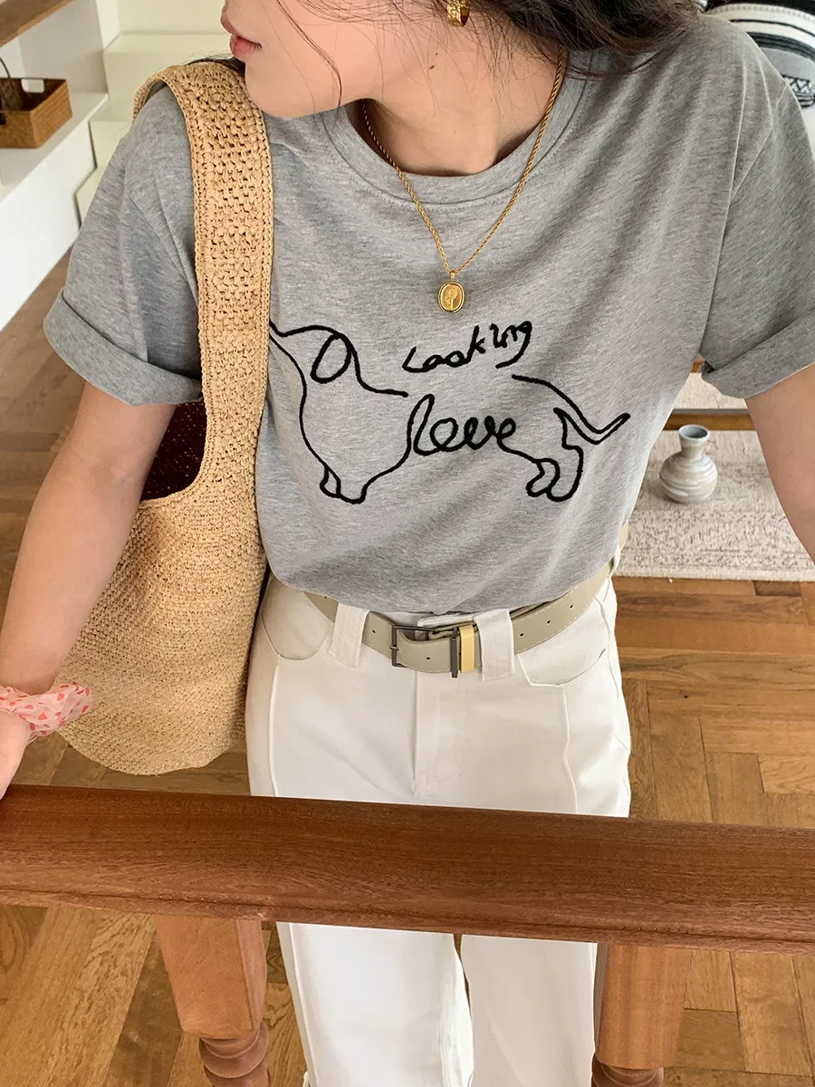 刺繡線條狗狗T