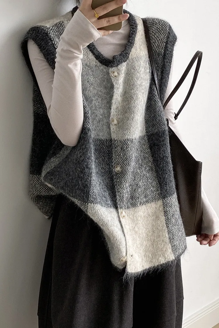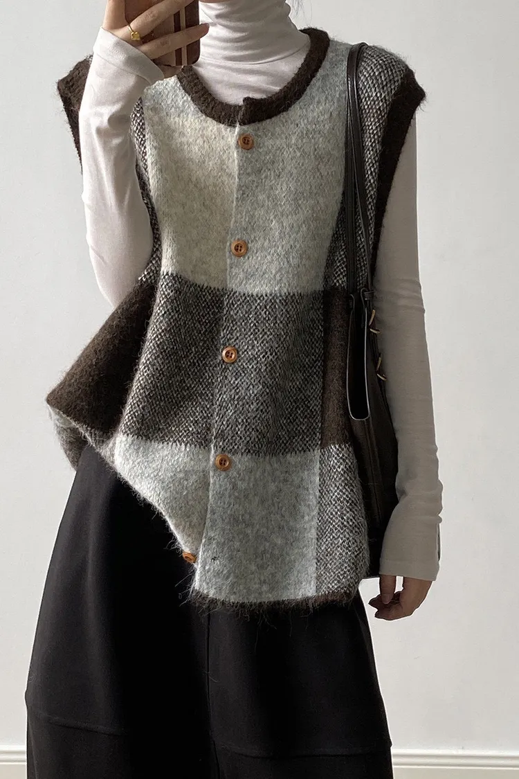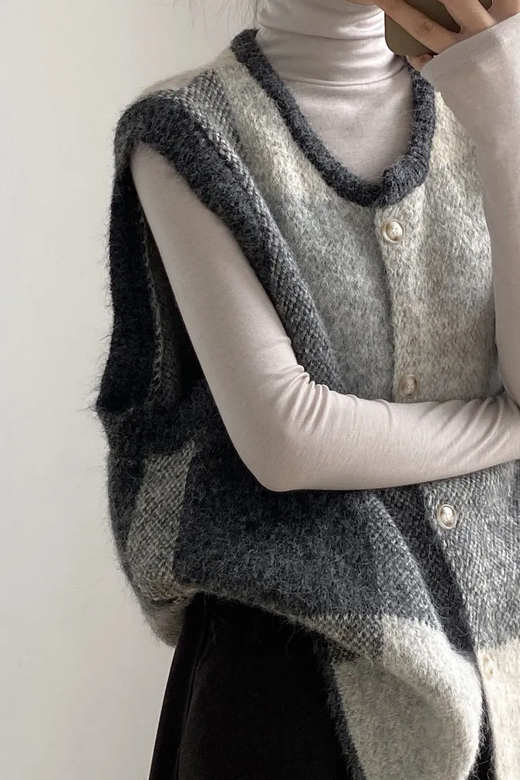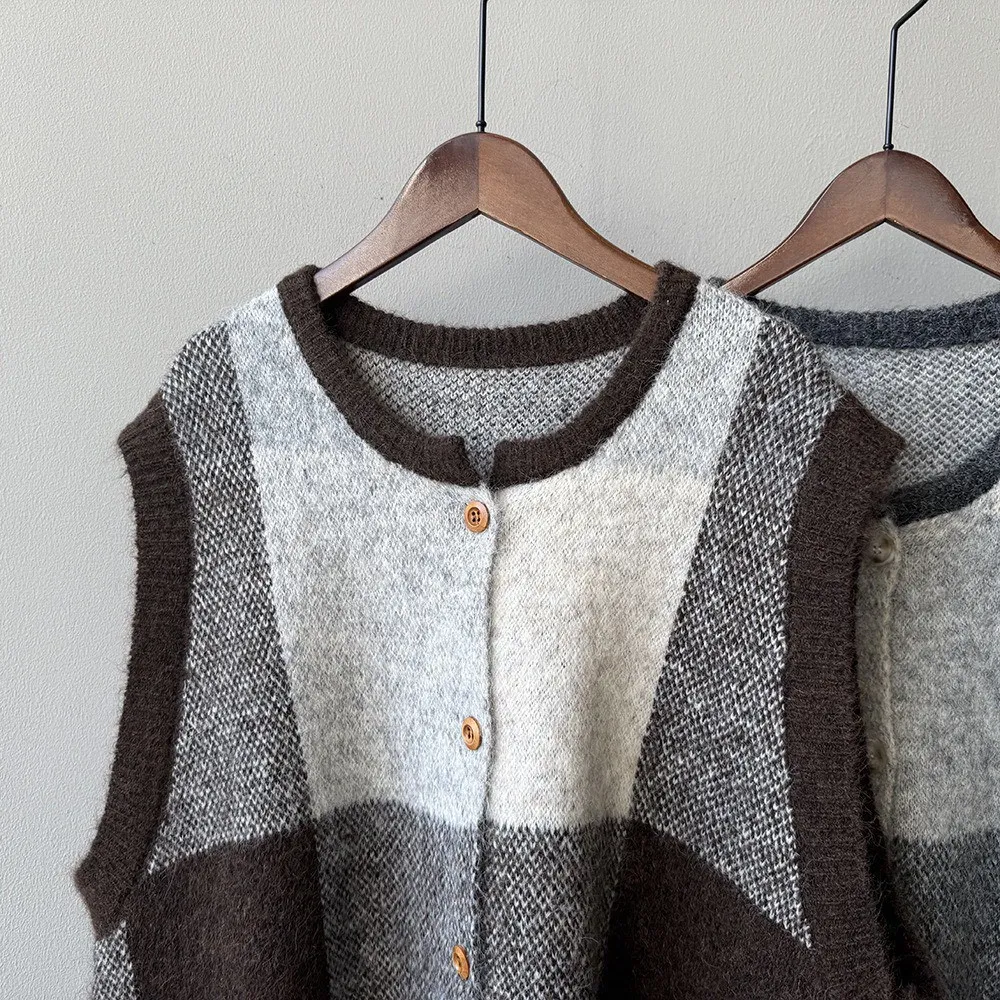 復古撞色 針織背心