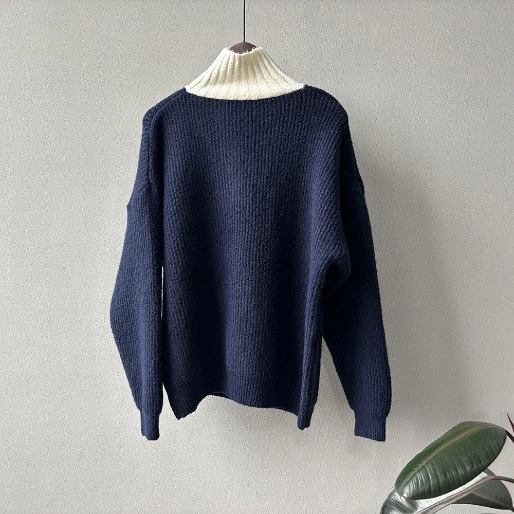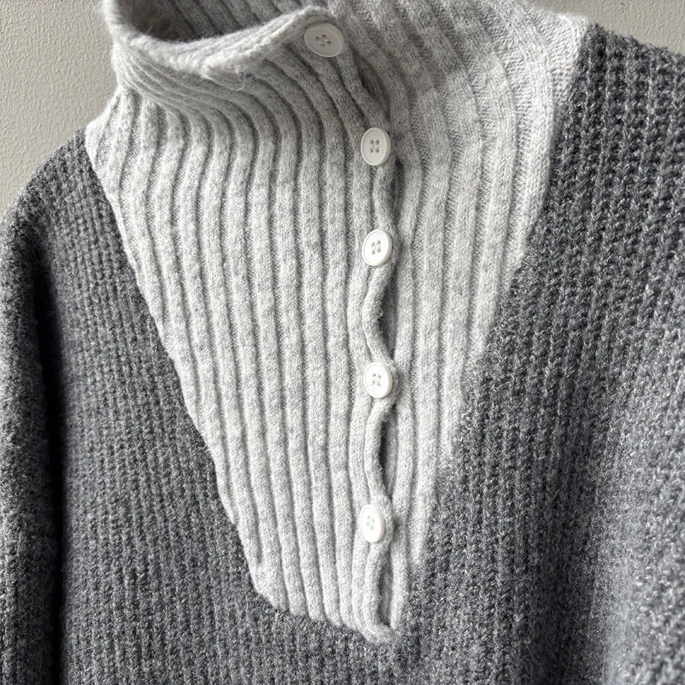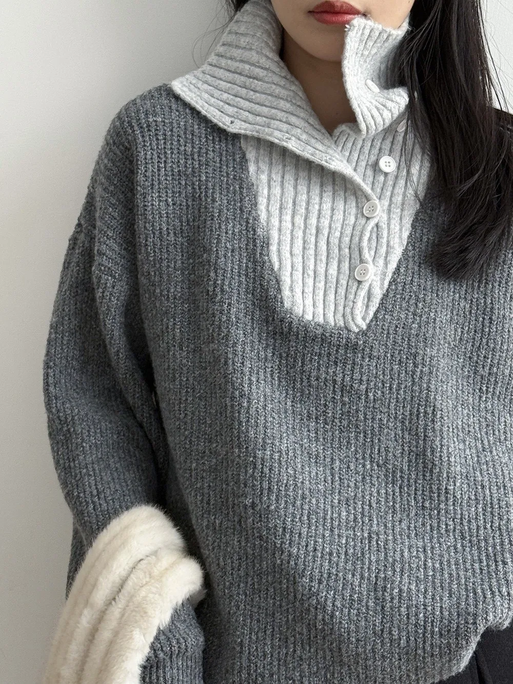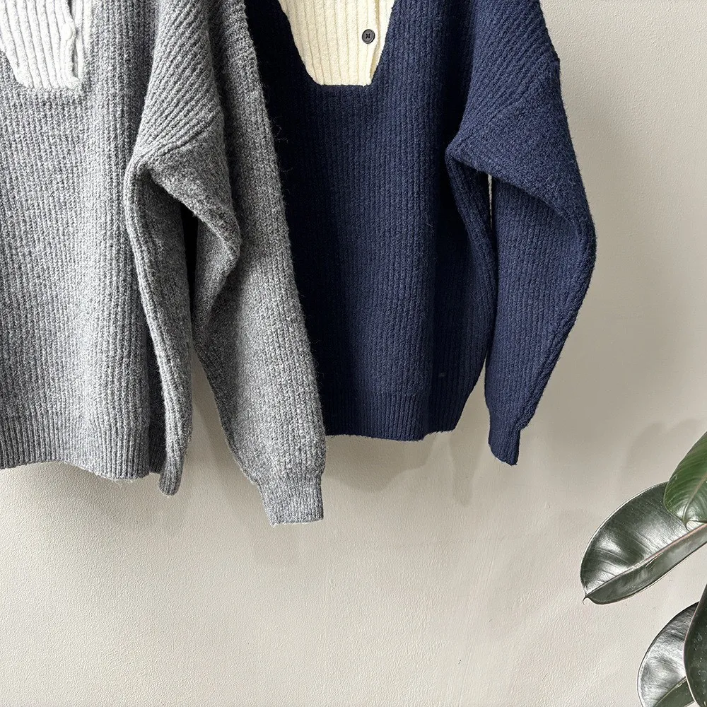 拼接翻領 針織毛衣