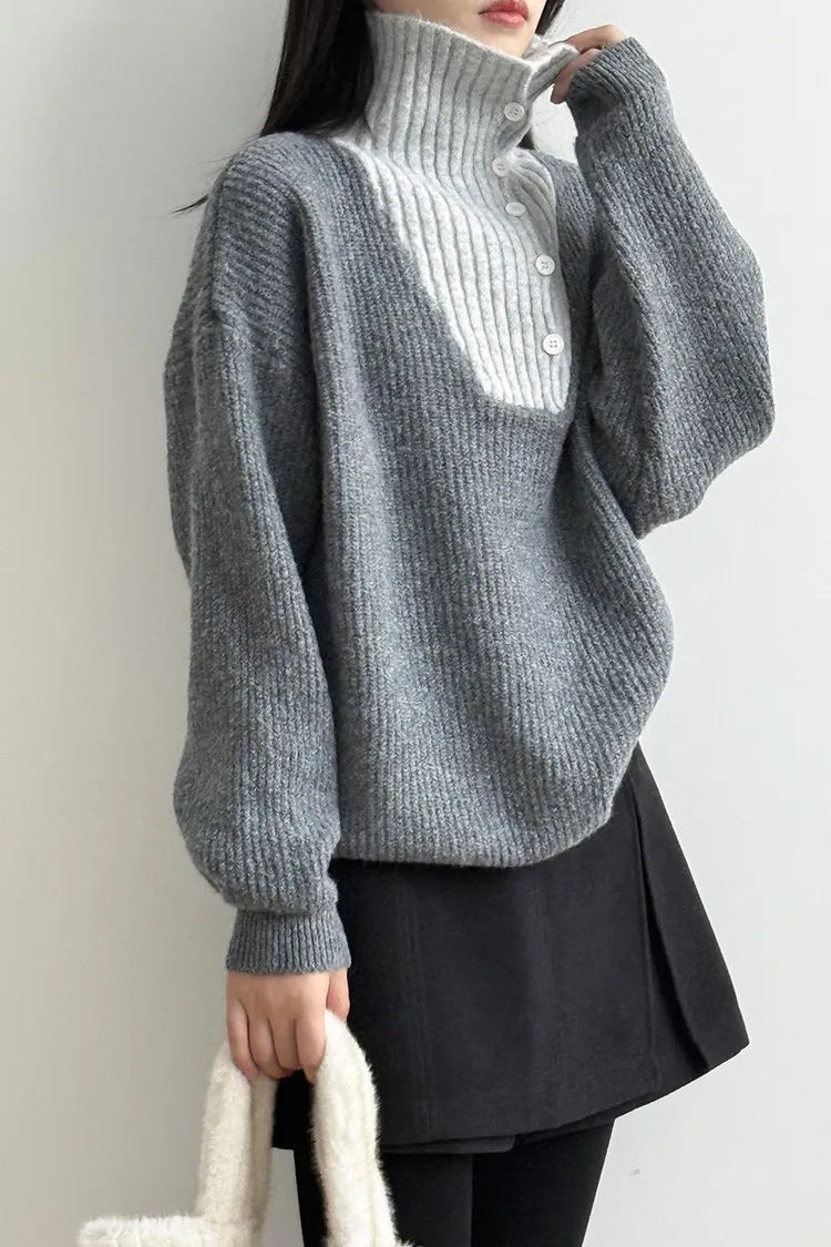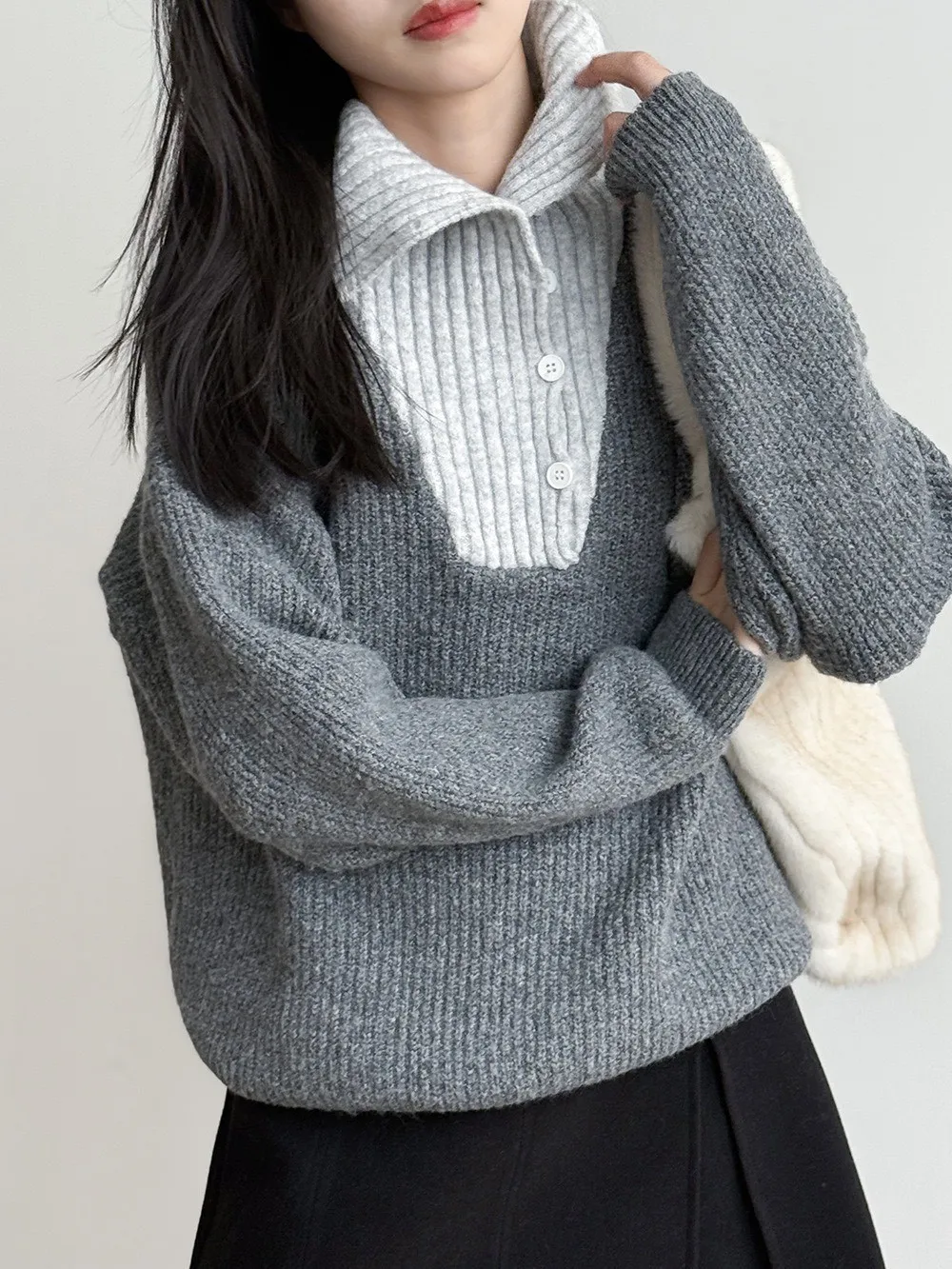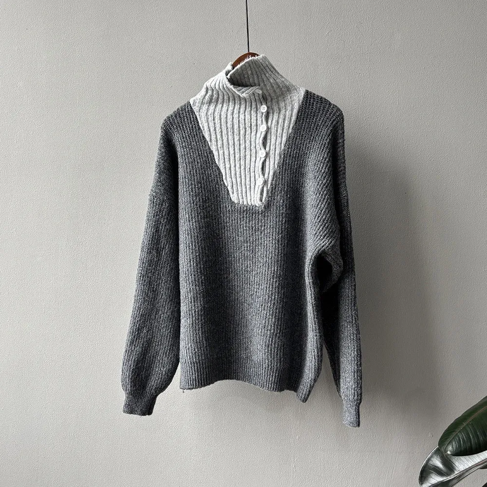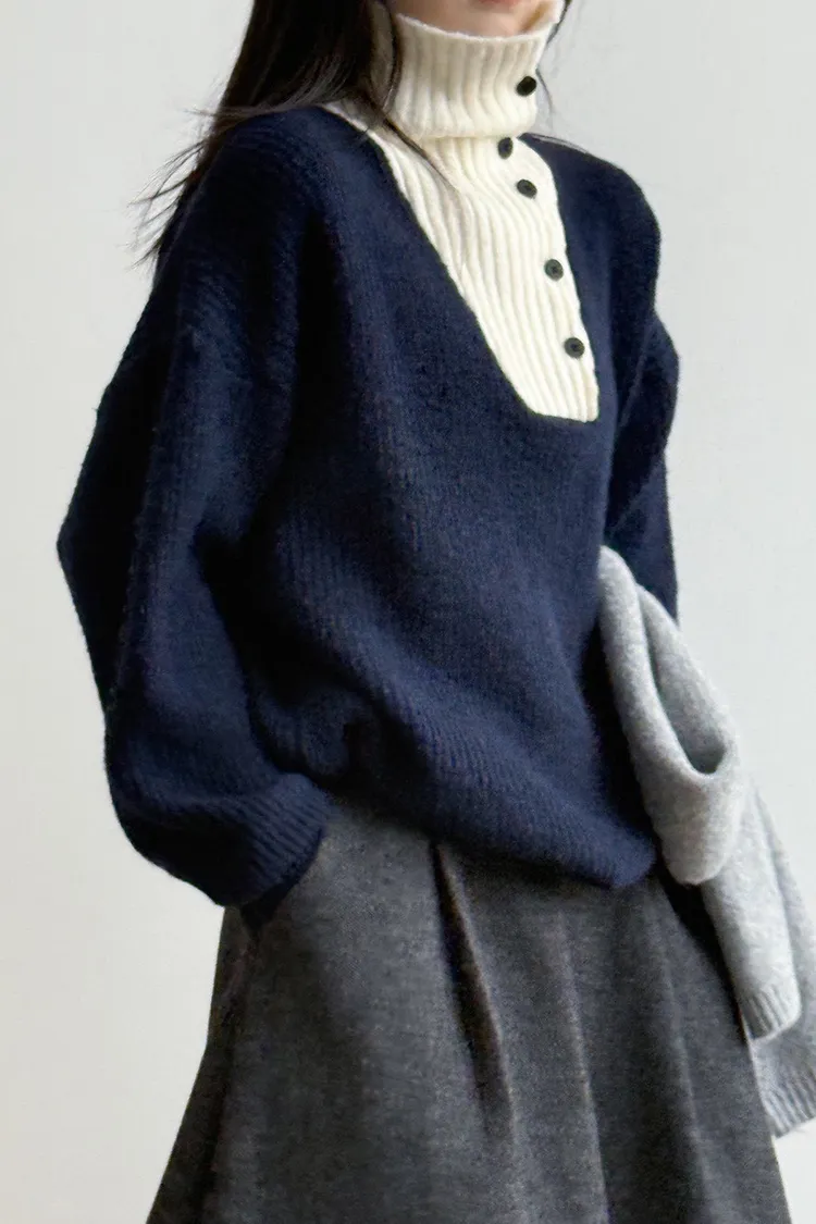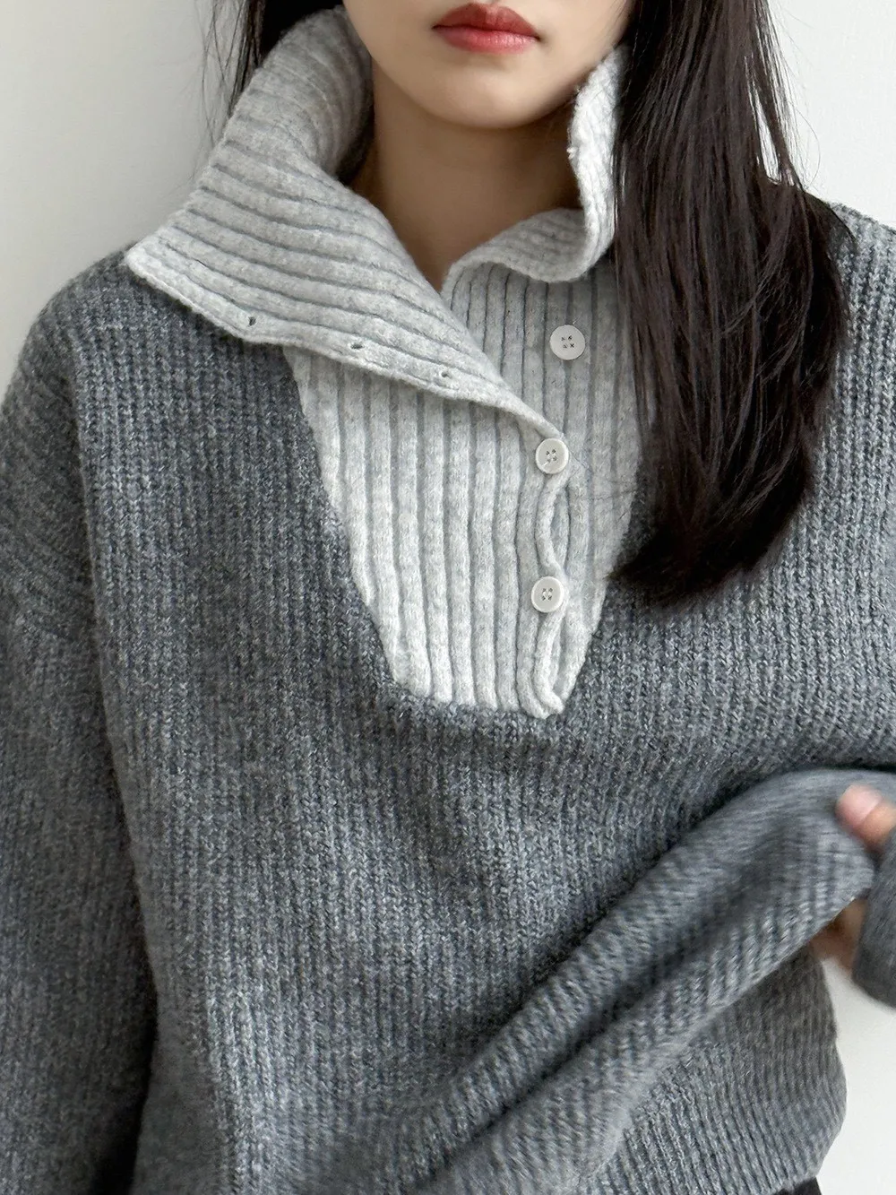 拼接翻領 針織毛衣