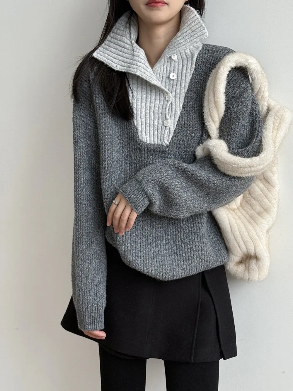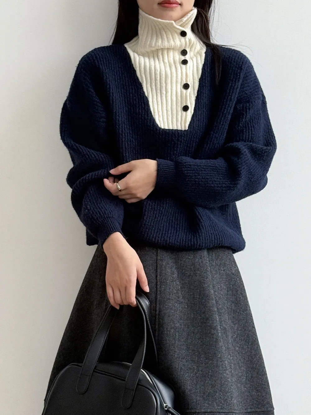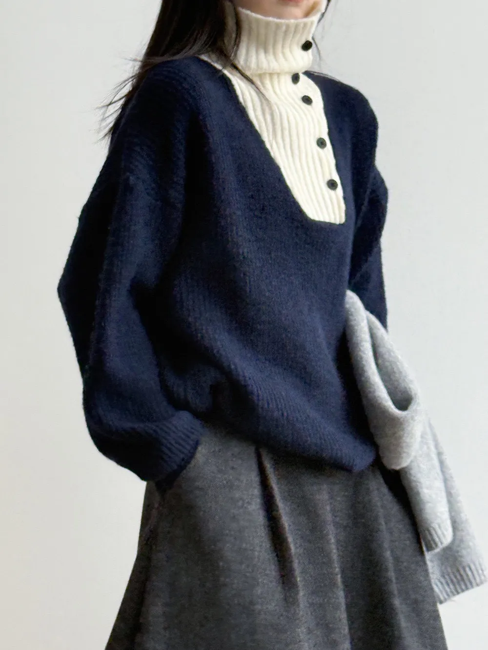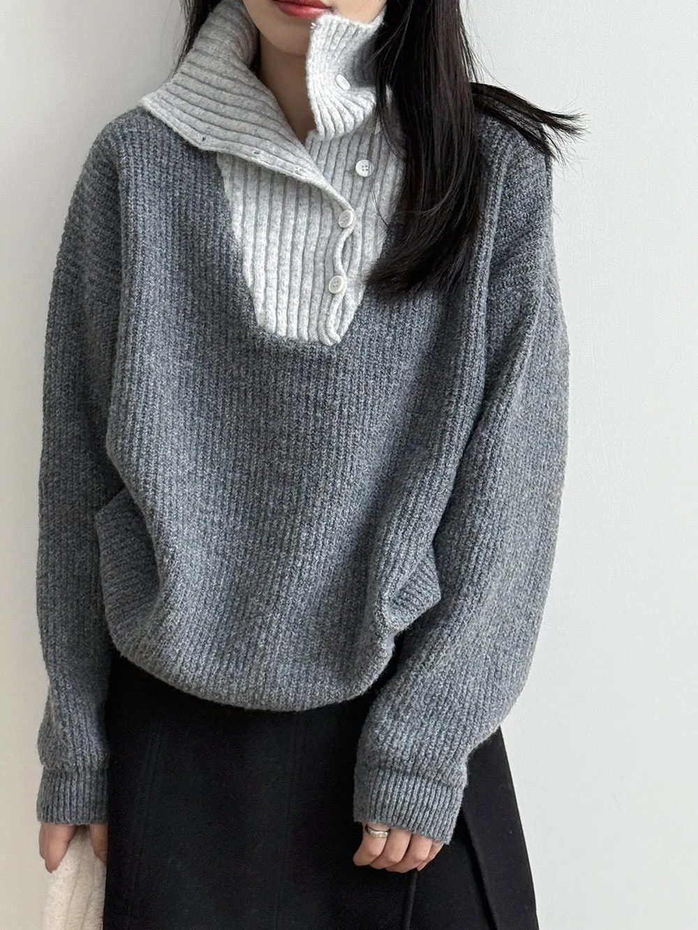 拼接翻領 針織毛衣