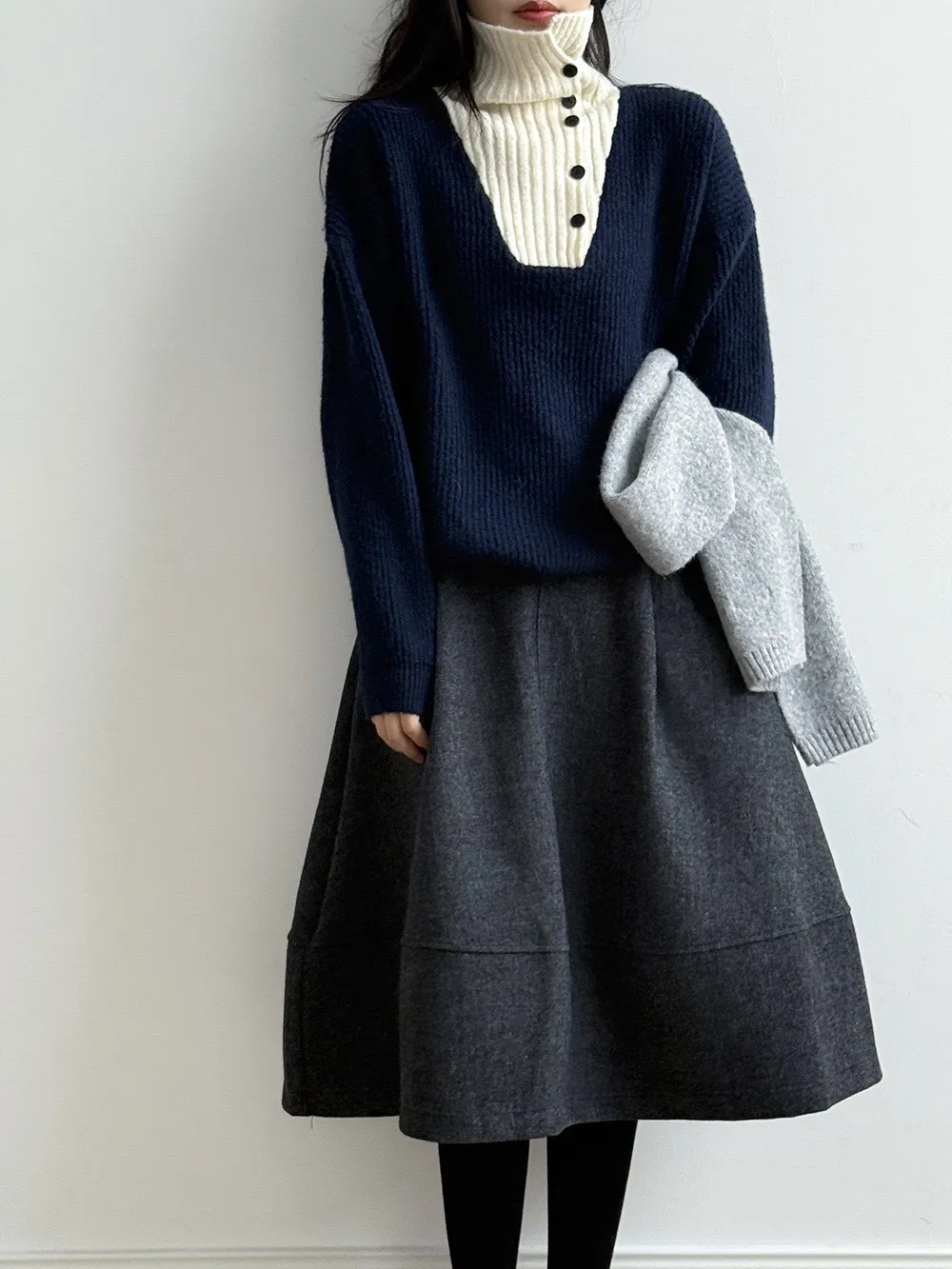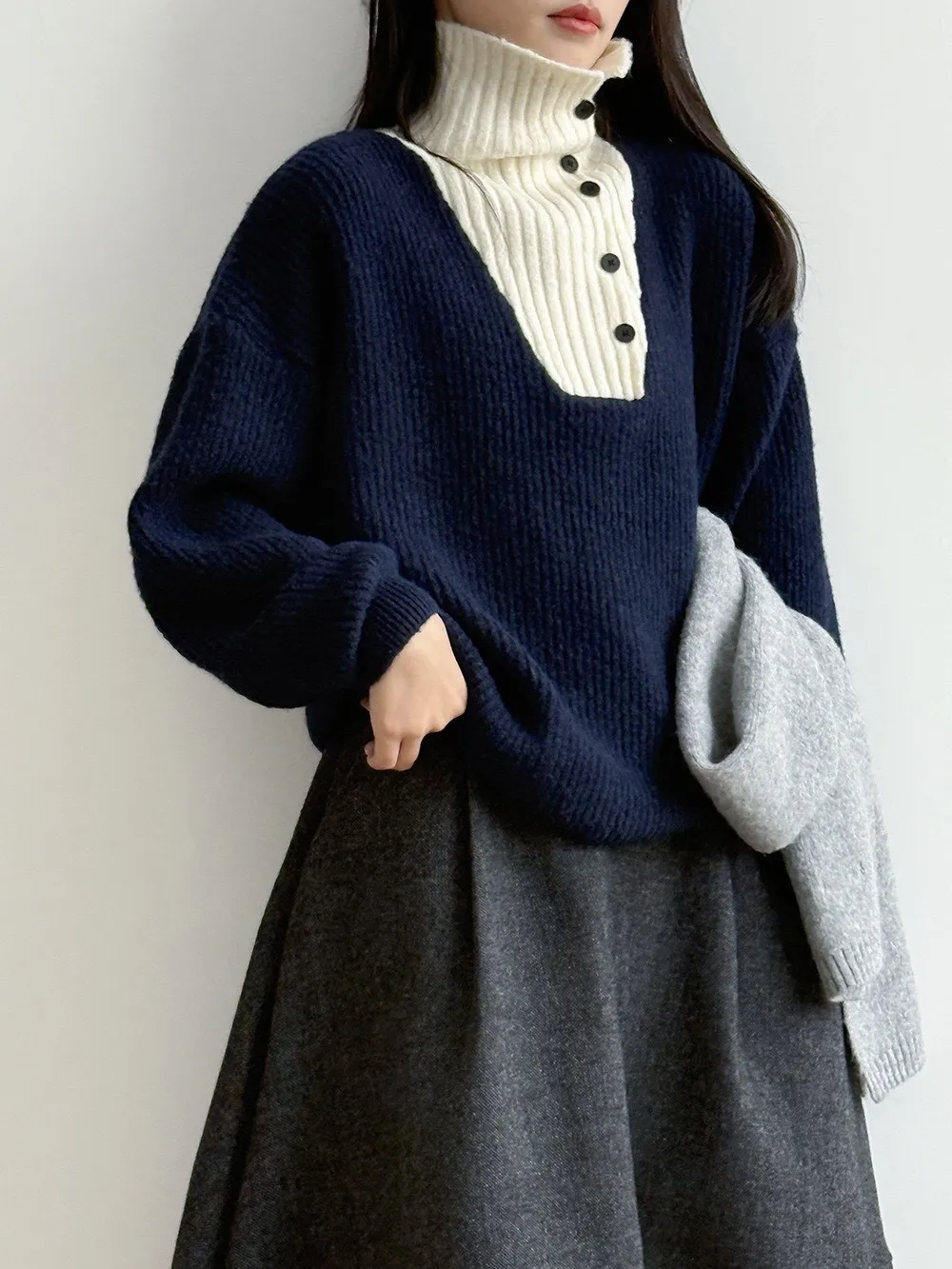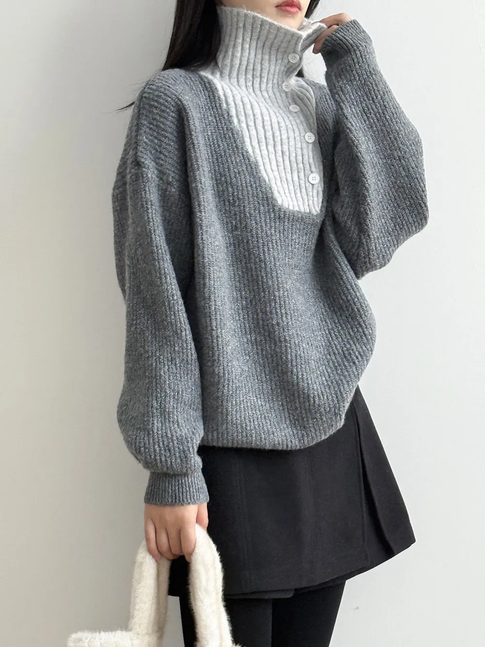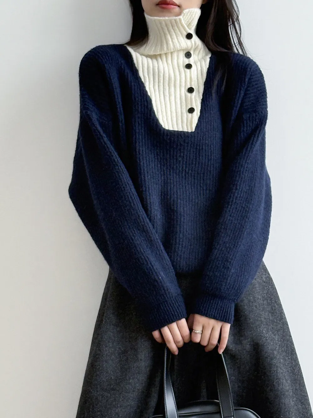 拼接翻領 針織毛衣