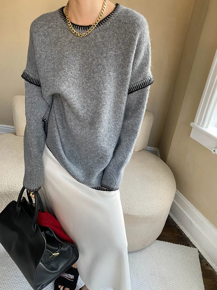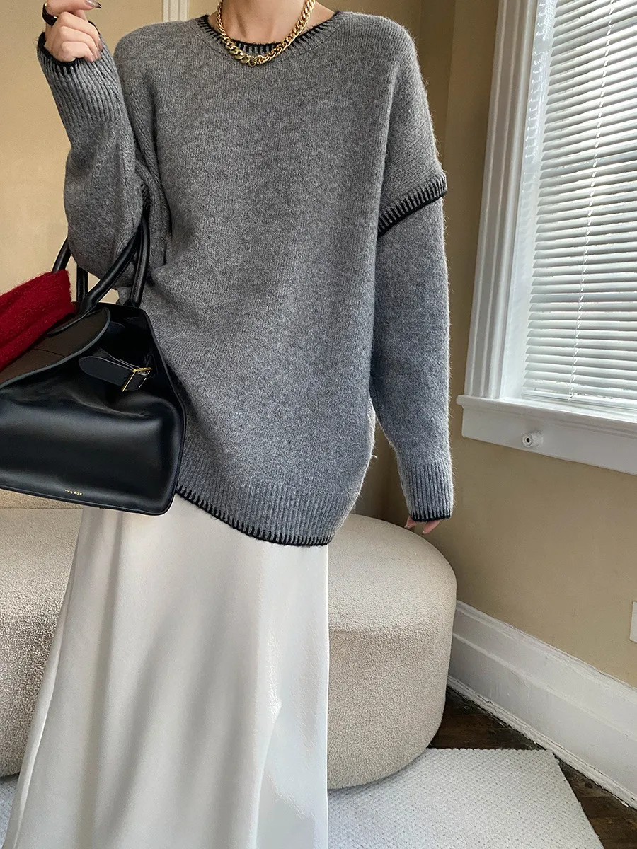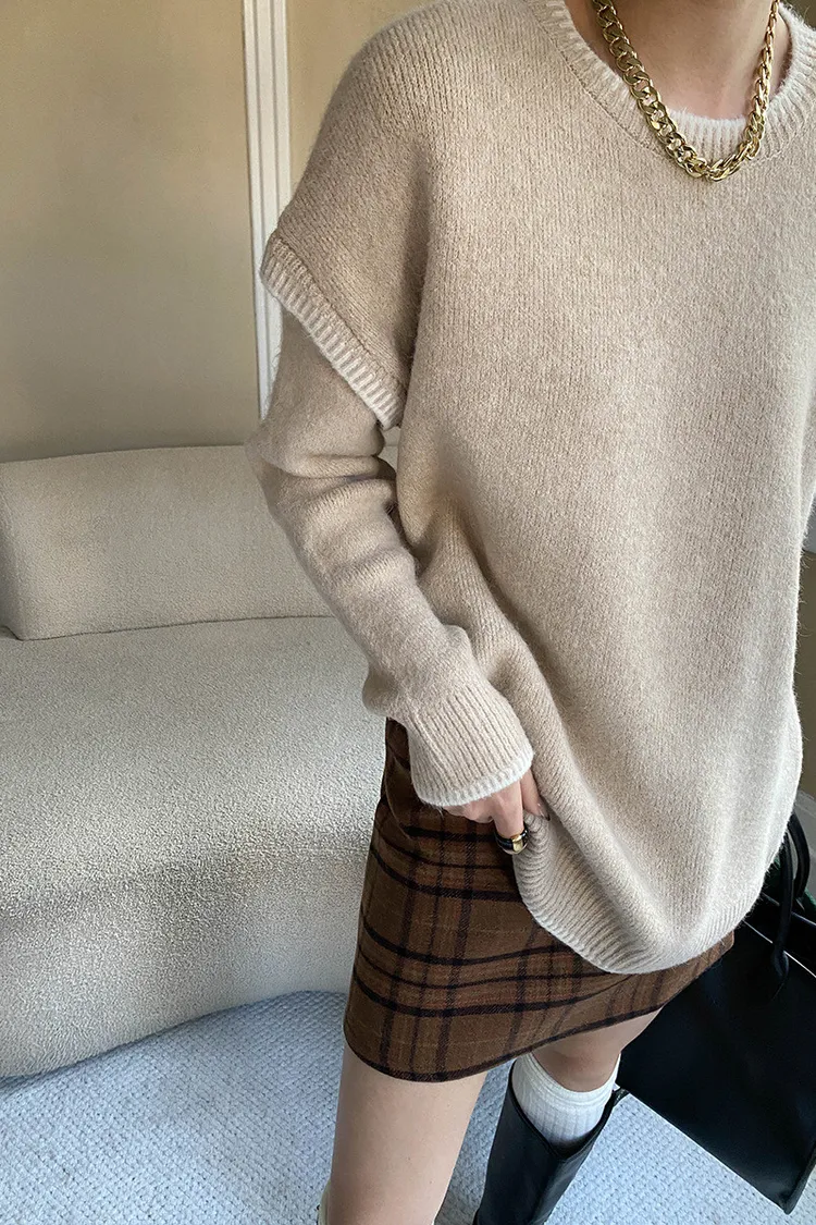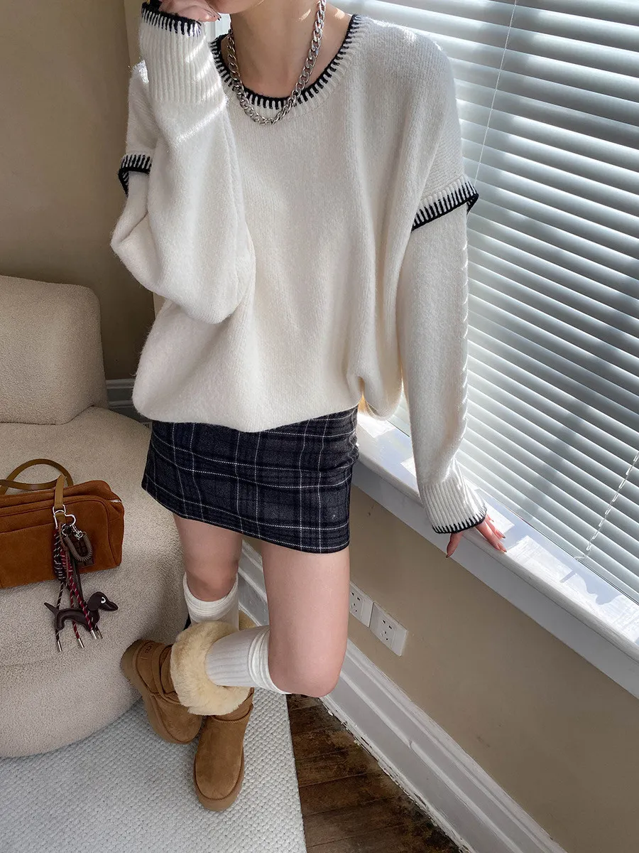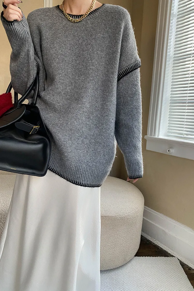 撞色設計感毛衣